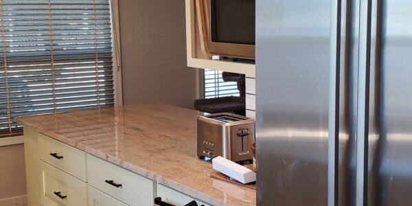 Despite the challenges posed by the limited space, the custom cabinets were designed to optimize storage and efficiency. Clever use of every available inch ensured that the kitchen was not only visually appealing but also highly functional. The remodel transformed the tiny space into a well-organized and stylish kitchen, demonstrating that even the smallest areas can be effectively updated with thoughtful design and custom craftsmanship.