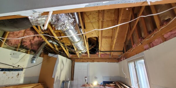As the ceiling was raised, the team had to carefully navigate around existing gas lines and central air and heating ducting, which were intricately woven through the old framework. Rerouting these essential utilities required precision and creativity to ensure that the new design remained functional without compromising the home’s structural integrity. Despite these complexities, the result was a dramatic improvement in both the aesthetic and functionality of the kitchen, making it an ideal space for family gatherings and entertaining.