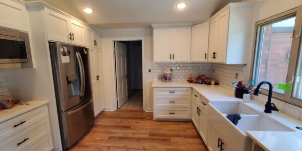 One of the biggest challenges in this kitchen remodel was removing the very low ceiling and transforming it into a vaulted ceiling to create a more open and spacious environment. The original low ceiling not only made the kitchen feel cramped but also posed significant obstacles when it came to modernizing the space.