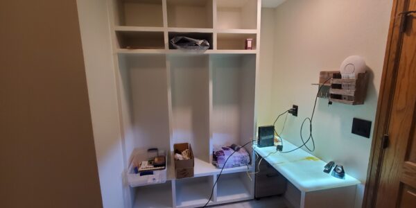 In addition to the prep kitchen, the remodel included a custom study station with an attached hall tree, seamlessly integrating functionality and style. The study station utilized the same LED panels and Onyx countertop as the kitchen, maintaining a cohesive design throughout the space. The warm, illuminated Onyx surface provided a sophisticated touch, making the study station both practical and visually appealing. This remodel successfully combined classic elements with contemporary technology, resulting in a space that was as functional as it was beautiful.