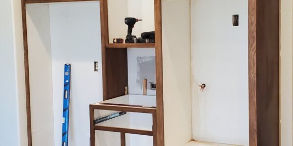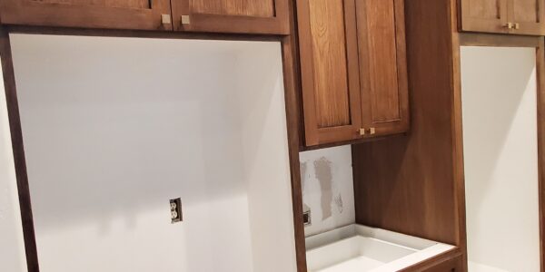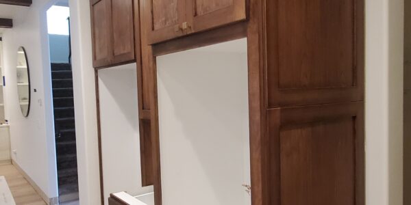 The kitchen remodel presented several significant challenges, primarily due to the high ceiling and the requirements for custom cabinetry and features. One of the main difficulties was designing and installing tall floor-to-ceiling cabinets that exceeded 8 feet in height. Ensuring these cabinets were both functional and aesthetically pleasing required precise measurements and careful planning.