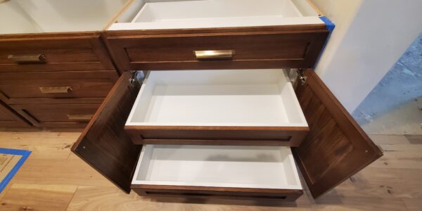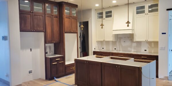 Additionally, incorporating a chase for electrical outlets within the island posed another challenge. This involved planning and executing the electrical work to ensure that outlets were both accessible and discreetly integrated into the island design. Despite these complexities, the project was completed successfully, resulting in a kitchen that expertly combined high ceilings, custom cabinetry, and modern amenities to create a beautifully functional space.