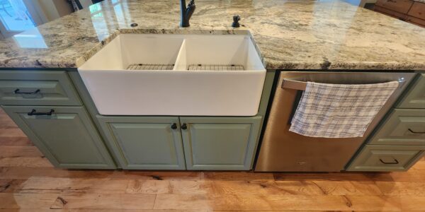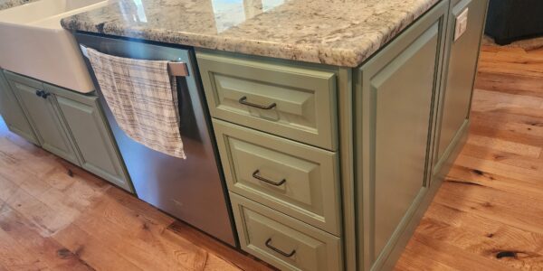 This partial kitchen remodel focused on updating the island while enhancing the overall design by introducing complementary elements. The existing island was replaced with custom paint-grade cabinets that were carefully chosen to complement the surrounding stained-grade wall cabinets. This thoughtful selection created a balanced contrast, adding visual interest to the kitchen.
